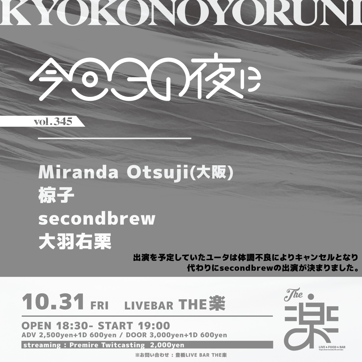 代わりにsecondbrewの出演が決まりました。