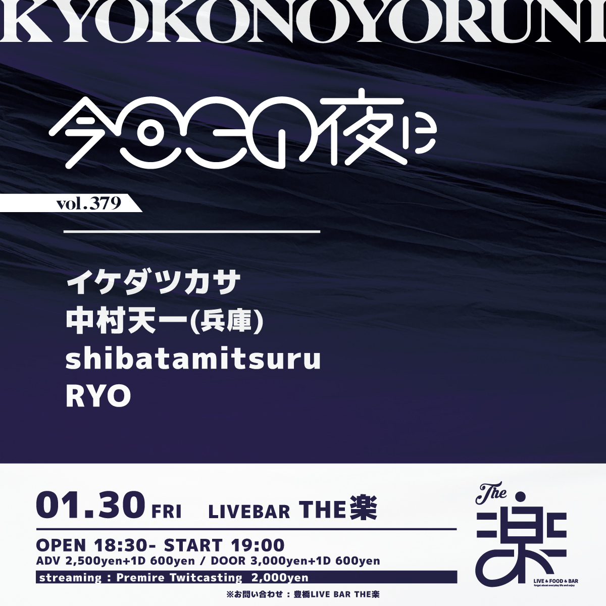 - ADV : 2,500 円 DOOR : 3,000 円 入場時にドリンク代 600円 が別途必要となります。