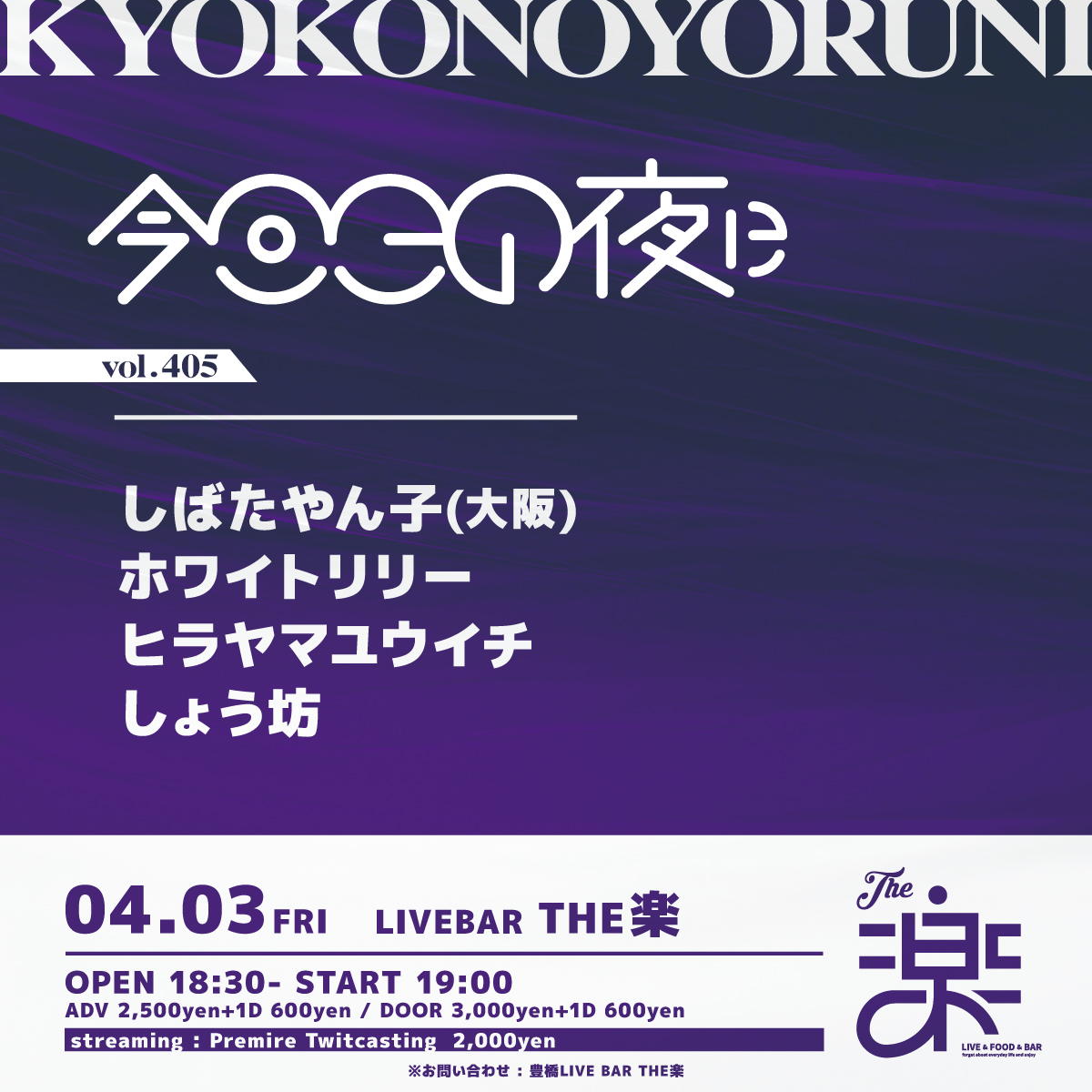 ADV : 2,500 円 DOOR : 3,000 円 入場時にドリンク代 600円 が別途必要となります。