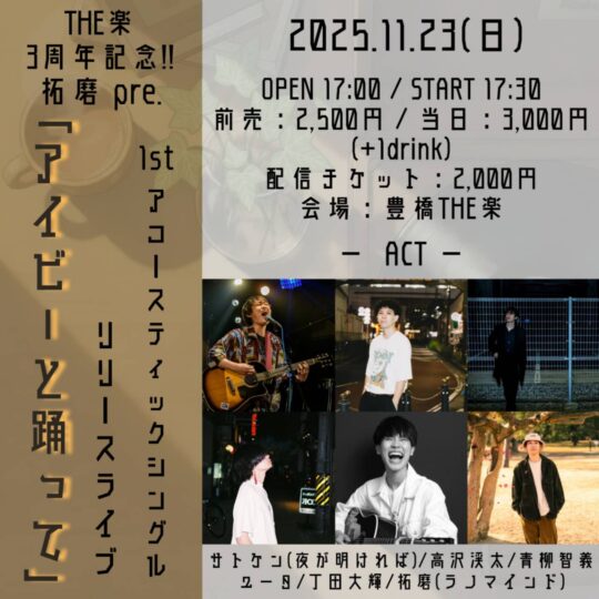 THE楽3周年記念!!拓磨pre. 1st アコースティックシングルリリースライブ「アイビーと踊って」